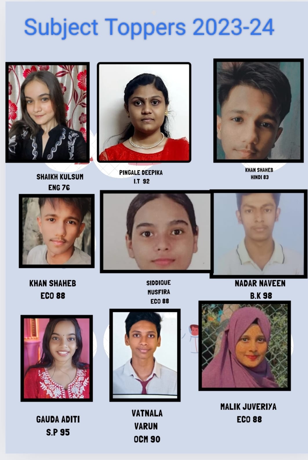HSC SUBJECT TOPPERS 2023-2024
